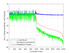 Selective transfer of information between spin-1/2 particles arranged in a ring is achieved by optimizing the transfer fidelity over a readout time window via shaping, externally applied, static bias fields. Such static control fields have properties that clash with the expectations of classical control theory. Previous work has shown that there are cases in which the logarithmic differential sensitivity of the transfer fidelity to uncertainty in coupling strength or spillage of the bias field to adjacent spins is minimized by controllers that produce the best fidelity. Here we expand upon these examples and examine cases of both classical and non-classical behavior of logarithmic sensitivity to parameter uncertainty and robustness as measured by the μ function for quantum systems. In particular we examine these properties in an 11-spin ring with a single uncertainty in coupling strength or a single bias spillage.